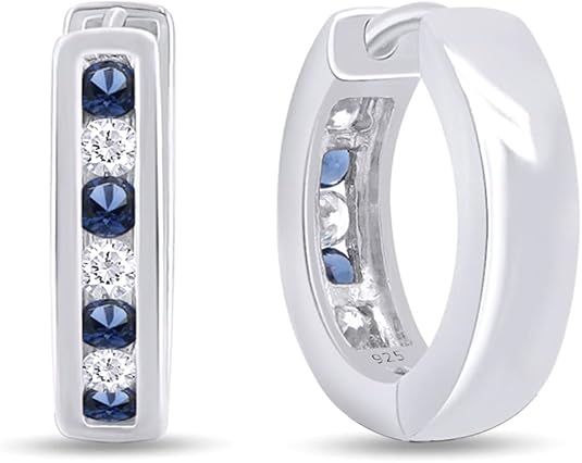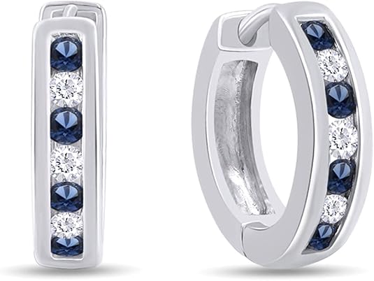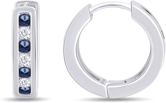 Glamorous Blue Sapphire and Diamond Hoop Earrings - Round-Cut Style