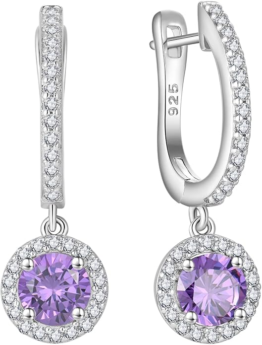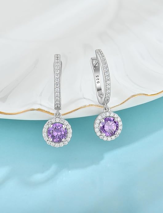 Luxury Purple Amethyst Drop Earrings β Round Cut Design