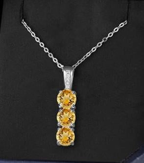 Radiant Round-Cut Citrine 3-Stone Pendant β Vibrant Charm