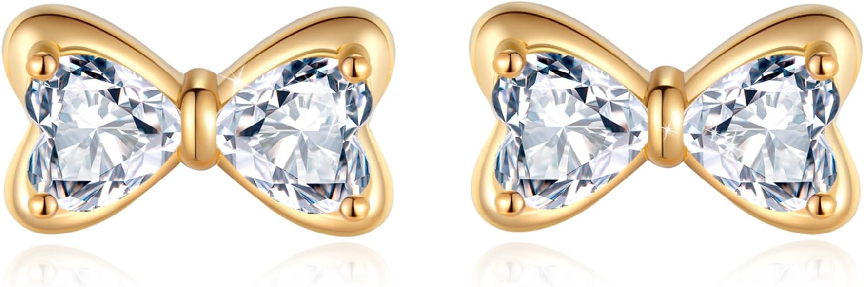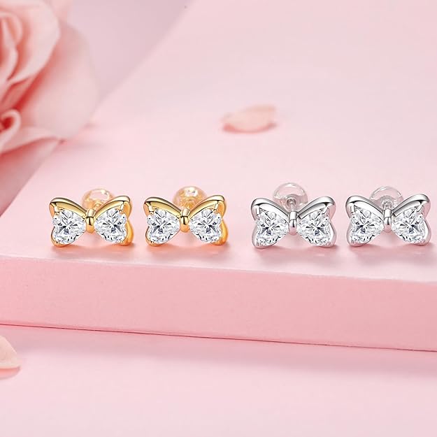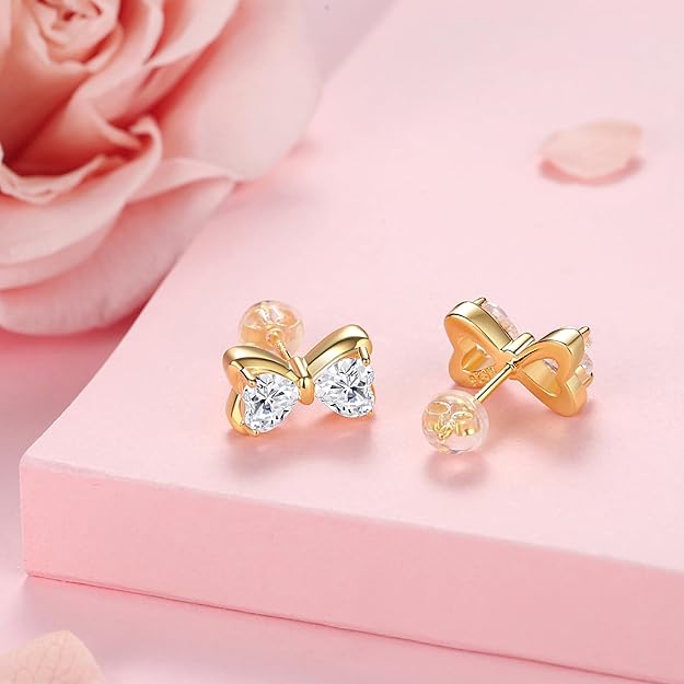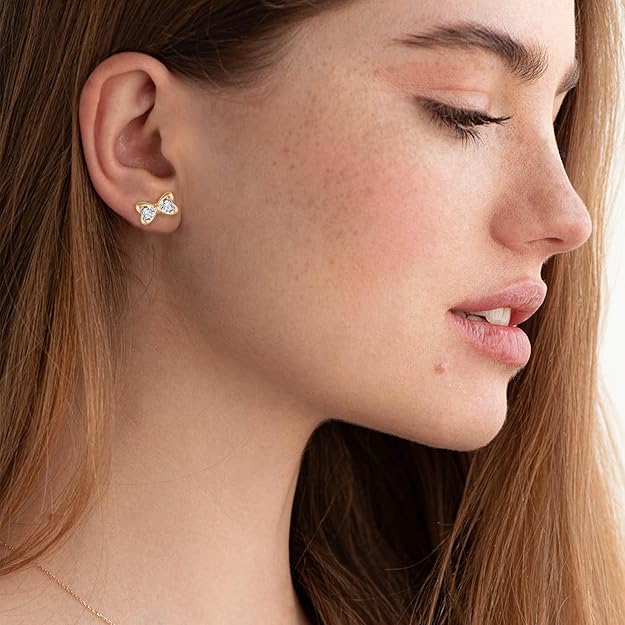 Women’s Heart Shaped Diamond Bow Knot Stud Earrings – Classic and Stylish